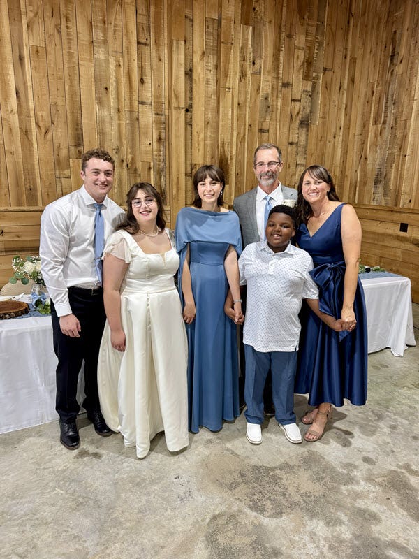 Our oldest boy—yes, our little barefoot, bug-collecting, sword-wielding backyard warrior—stood with confidence, eyes locked on his bride, and promised to love, honor, and cherish her all the days of his life. And just like that, the baton has been passed. Another family launched into the great wide somewhere.