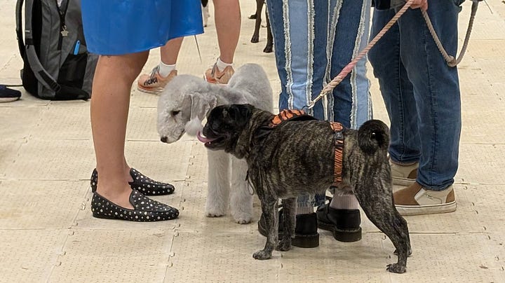 And oh, the cast of canine characters we met along the way! Fizz, the stately Great Dane who walked like royalty. Tank, whose name fit him perfectly. Izzy, James, Zeppelin, Elvis, Navy, Hermione, and Lucyâeach with their own quirks and personalities. AJ had a blast keeping track of names, while Ollie gave us his best âplease tell me weâre not bringing home a siblingâ sigh of relief every evening, intensely investigating the scents of potential affection betrayal.